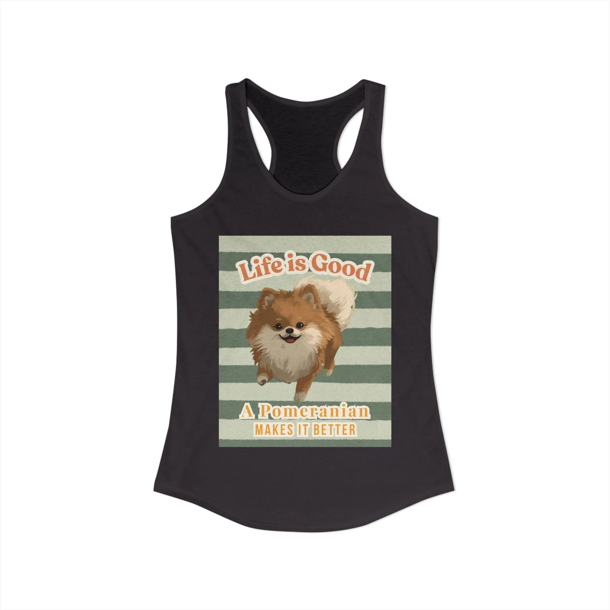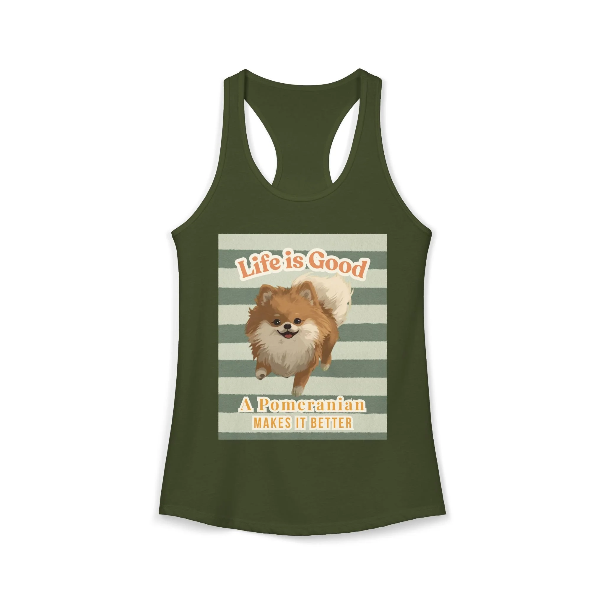 A high-quality print of this slim fit tank-top will turn heads. Bystanders won't be disappointed - the racerback cut looks good on any woman's shoulders.
